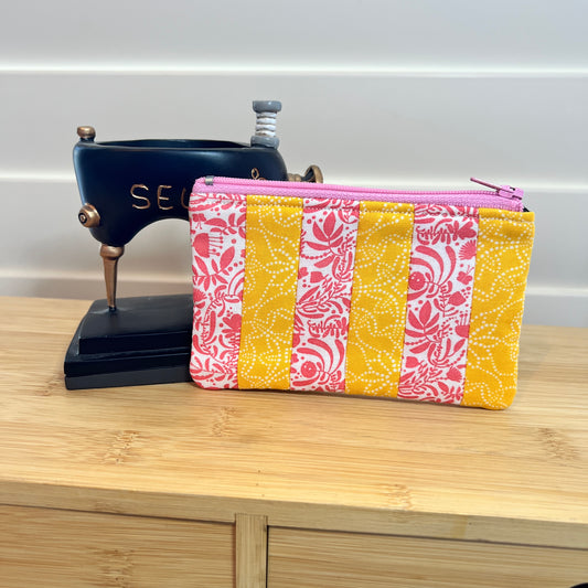 Hand Quilted Yellow and Pink Coin Purse