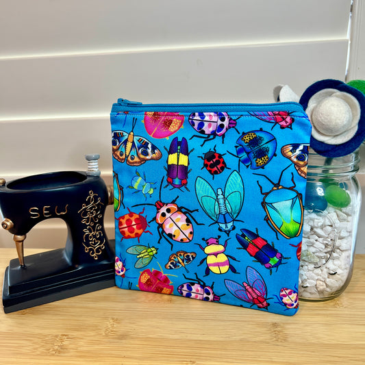 Bugs on Blue Square Zip/Makeup Bag