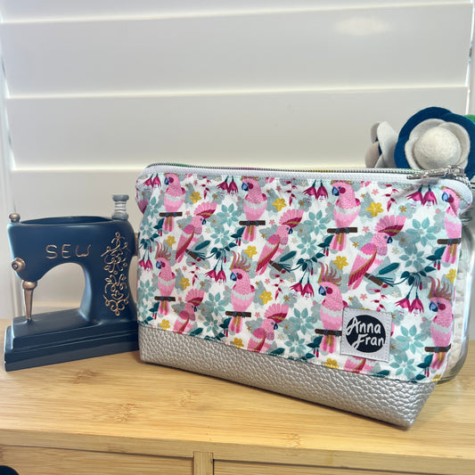 Handmade Pink Cockatoos Makeup Bag
